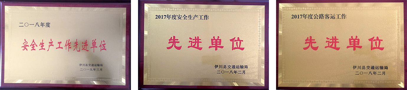 2018年2月被伊川縣交通局評為安全生產(chǎn)工作先進單位及公路客運工作先進單位。